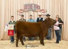Red Rainbow Lark 2B Sired by SSS Endorse Grand Champion Heifer at 2015 NILE. Owned by LeDoux Red Angus of Kansas.